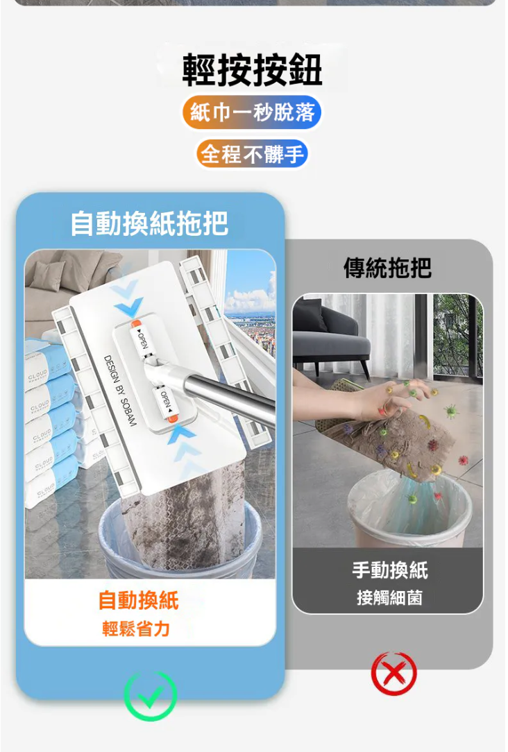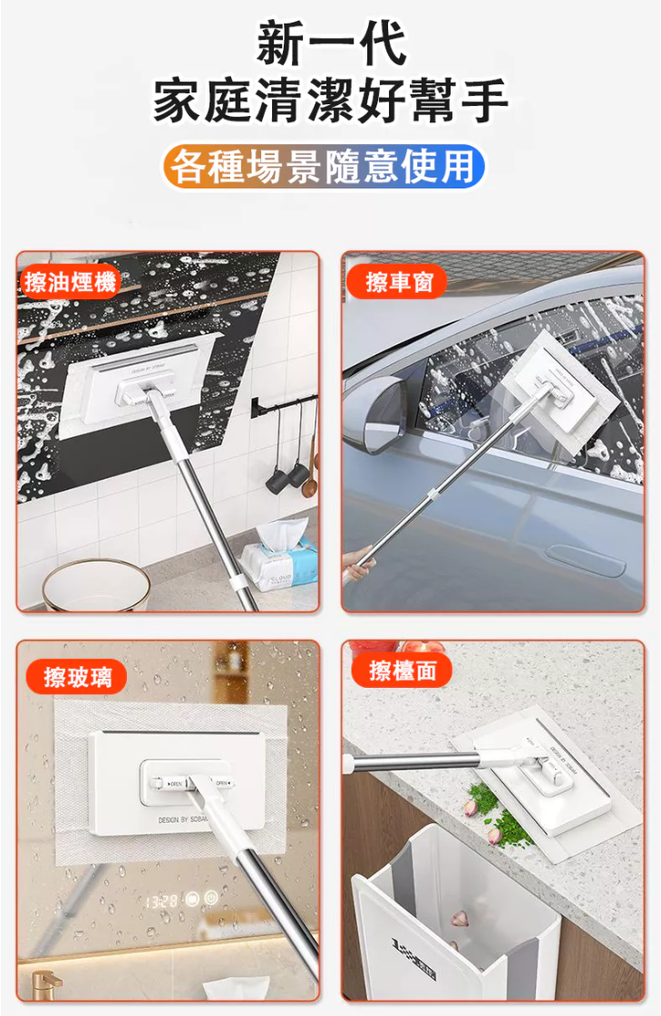 4分鐘前【台灣爆紅款 現貨秒發】3秒快速換布,免手洗超衛生,360度旋轉拖頭,深入縫隙無死角,磁磚、木地板都適用! - 【嘗鮮套餐】2入組-NT$980